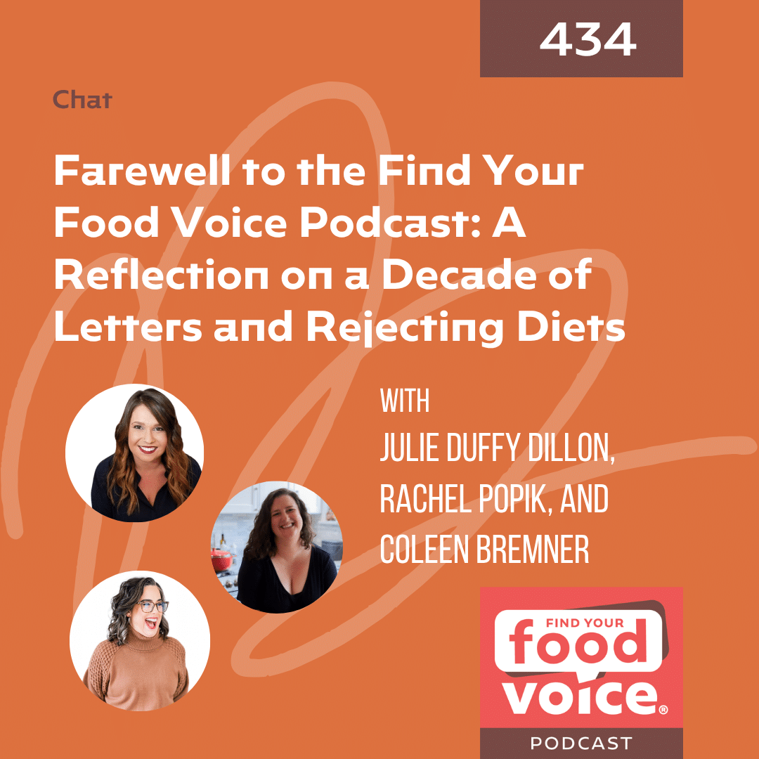 This podcast helps me so much in my (often lonely) journey to become an intuitive eater in a world where almost everybody is trying to lose weight by dieting over and over again. It’s like my lighthouse to keep going in the right direction. Thank you so much!!!